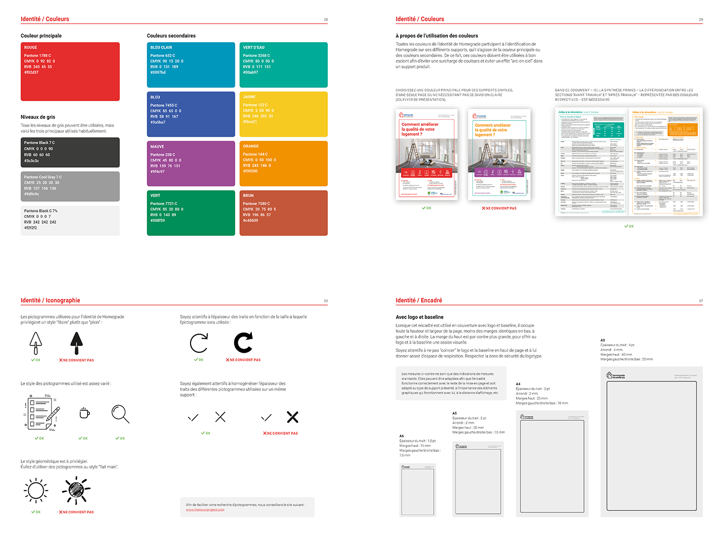 Une charte graphique complète a été réalisée afin de guider au mieux l'équipe dans la mise en place de l'identité sur les différents supports.